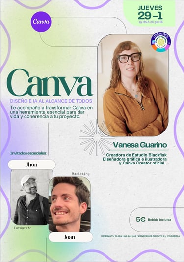 Ponente:Vanaesa Guarino, ilustradora, diseñadora y Canva Creator oficial.